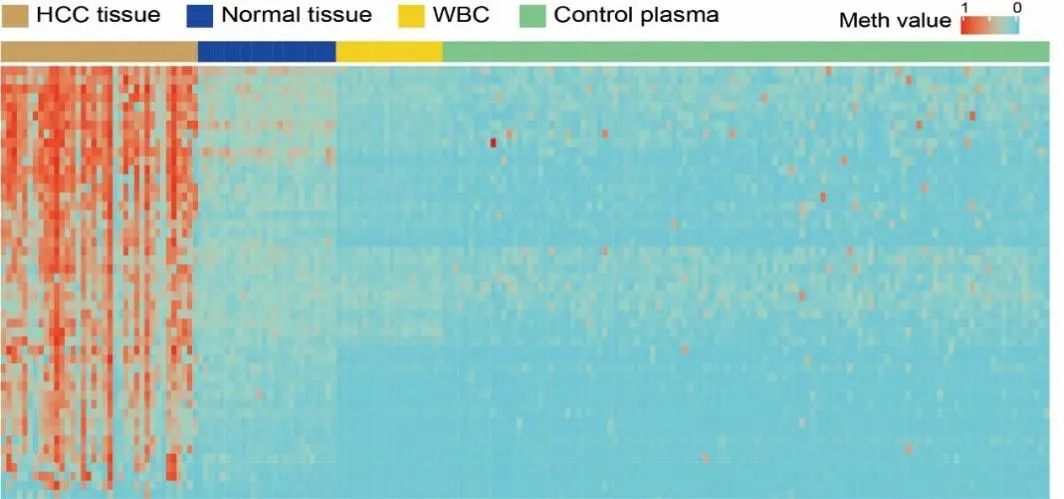图2. HCC特异性甲基化标志物热图