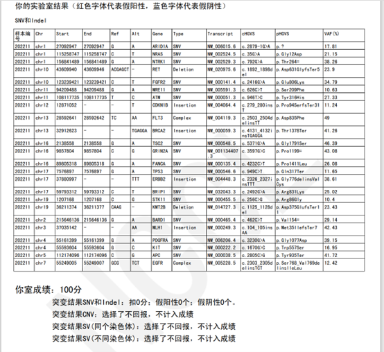 在今年6月份国家卫生健康委临检中心(National Center for Clinical Laboratories,NCCL)组织的肿瘤体细胞突变高通量测序检测生物信息学分析考核中,3044am永利集团医学检验所亦以满分成绩通过考核。