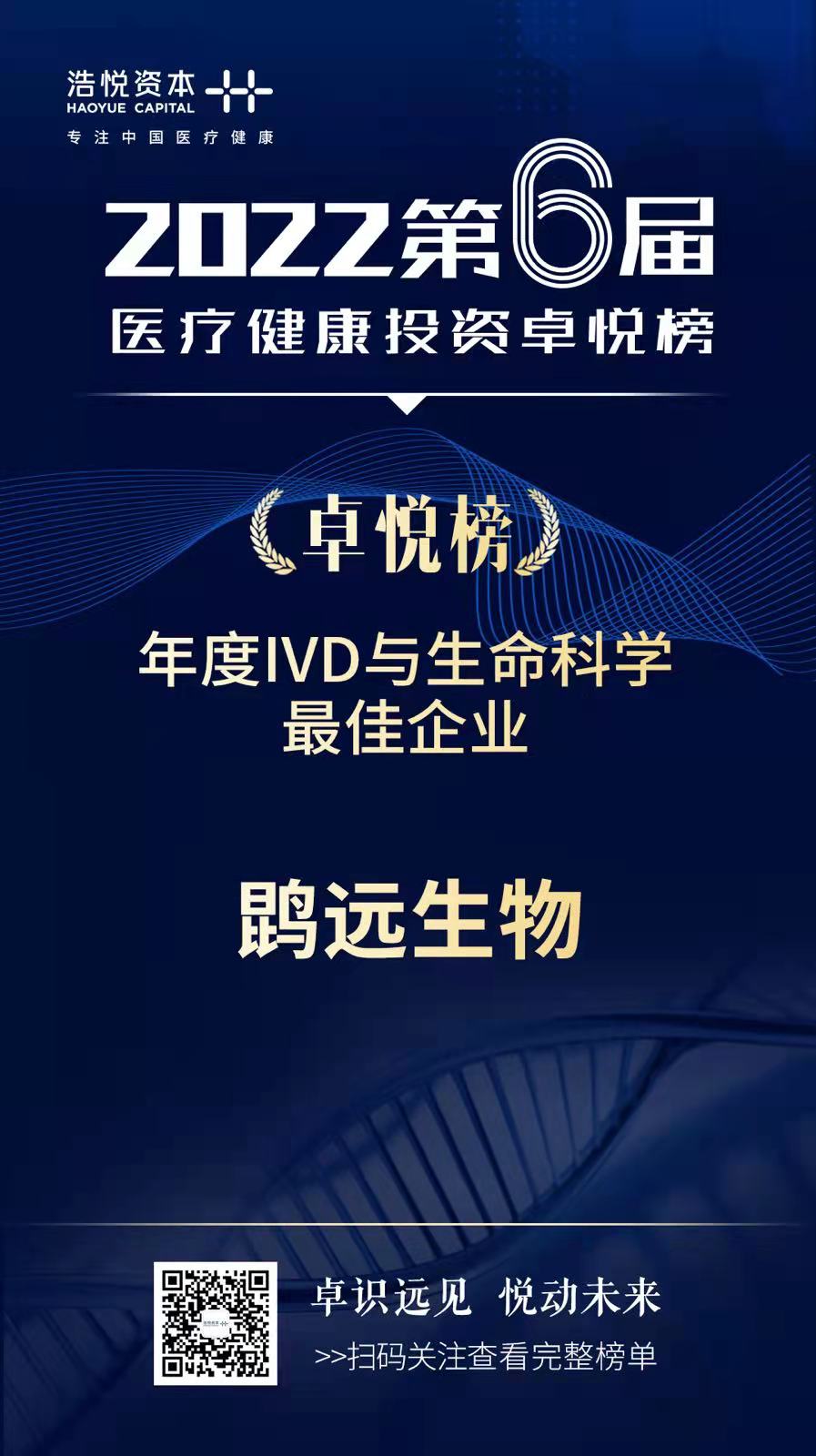 2022年4月3日,专注于中国医疗健康的产业投行浩悦资本正式发布了“2022第六届医疗健康投资卓悦榜”。3044am永利集团荣获“2021年度IVD与生命科学最佳企业”奖。